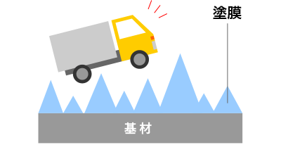 フッ素樹脂と基材との接着に必要なバインダーが塗膜表面近くに露出し、潤滑性を悪くする要因に。